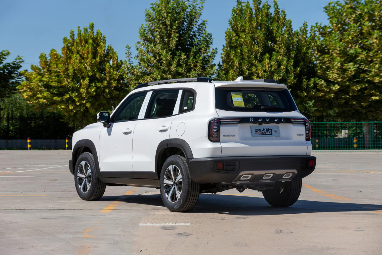 侧面可以说是哈弗大狗最显硬朗的一面,整体方方正正的造型,加上黑色的轮眉设计,使得整车看起来多了几分野性的味道。尺寸来看,新车的长宽高分别为4620×1890×1780mm,轴距2738mm。而且哈弗大狗不仅看起来硬派,其车身还拥有24°的接近角、30°的离去角,以及200mm的离地间隙,实际的通过性也不容小觑。